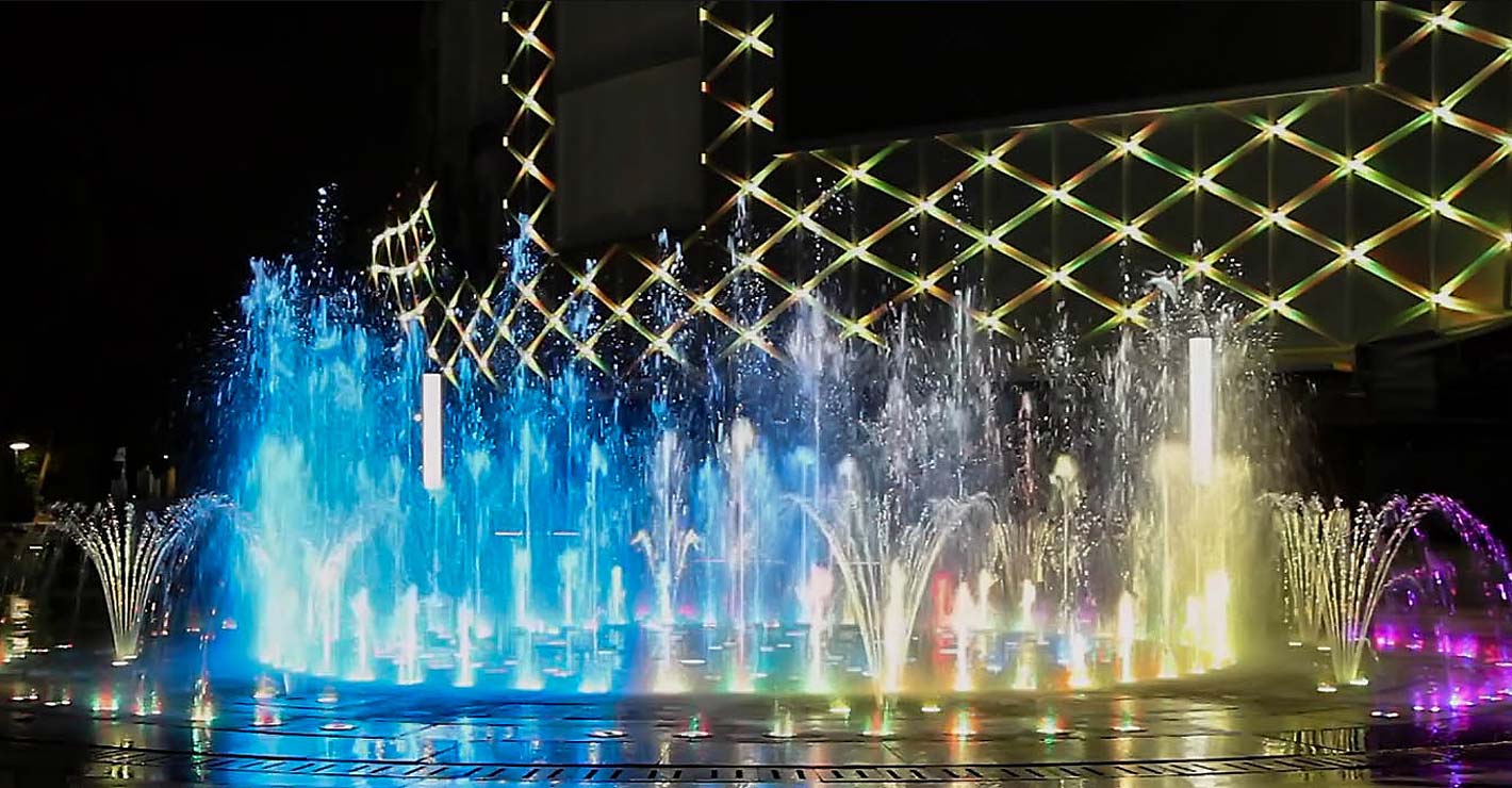 音樂噴泉,以創(chuàng)意、歡樂、互動、體驗為設(shè)計靈感,勾勒一處具有吸引力的靈動景觀,營造現(xiàn)代都市璀璨生活場景。八種變頻控制的噴泉水形,隨著音樂變換,為人們在夜間增添一份美輪美奐的視聽盛宴,為快節(jié)奏的城市生活,帶來一份難得的浪漫閑適。采用隱藏水池、噴頭、燈光的旱式噴泉,設(shè)計了造型豐富,錯落有致的噴泉水形,并利用最新的LED專用燈和變頻控制系統(tǒng),使建成后的噴泉水景成為既不占用廣場空間,又集觀賞、休閑、樂趣于一體的景觀亮點。