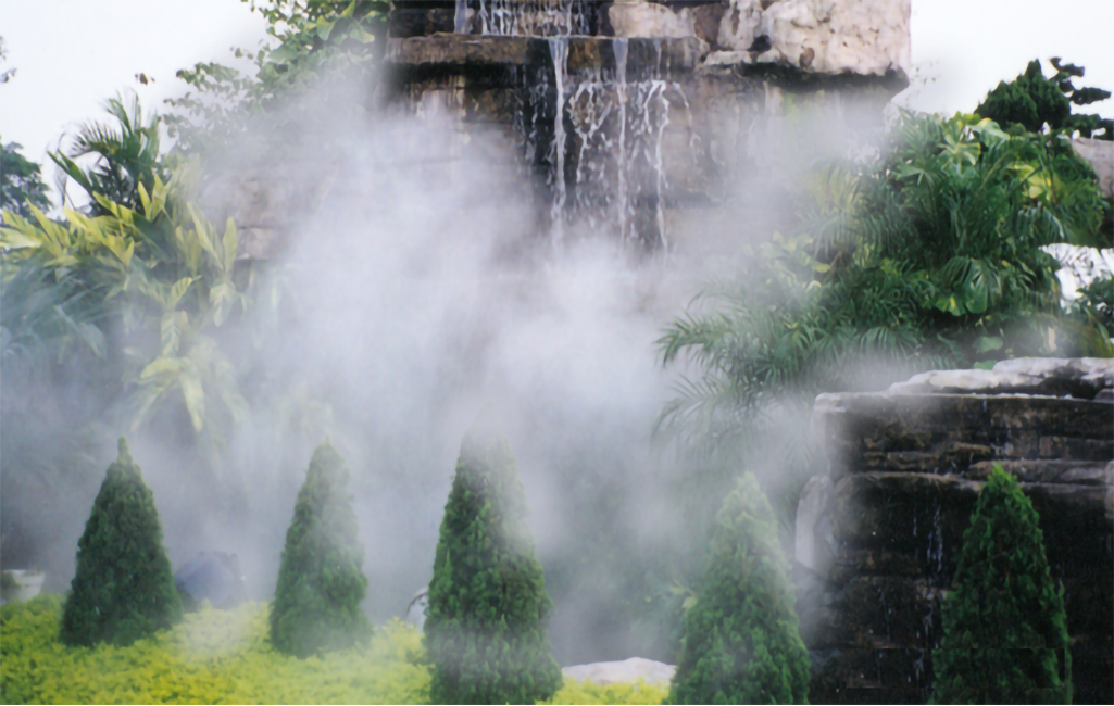 環(huán)境景觀造霧既可以美化環(huán)境、烘托氣氛,又可以提高人文及自然景觀的造景效果。極大地營造和改進人類生存和居住環(huán)境。它可使您如臨深山,回歸自然;如入仙境,小橋流水,綠樹紅花,云霧繚繞。此外,人造霧能產(chǎn)生大量的負離子,能有效改善人居活動環(huán)境。